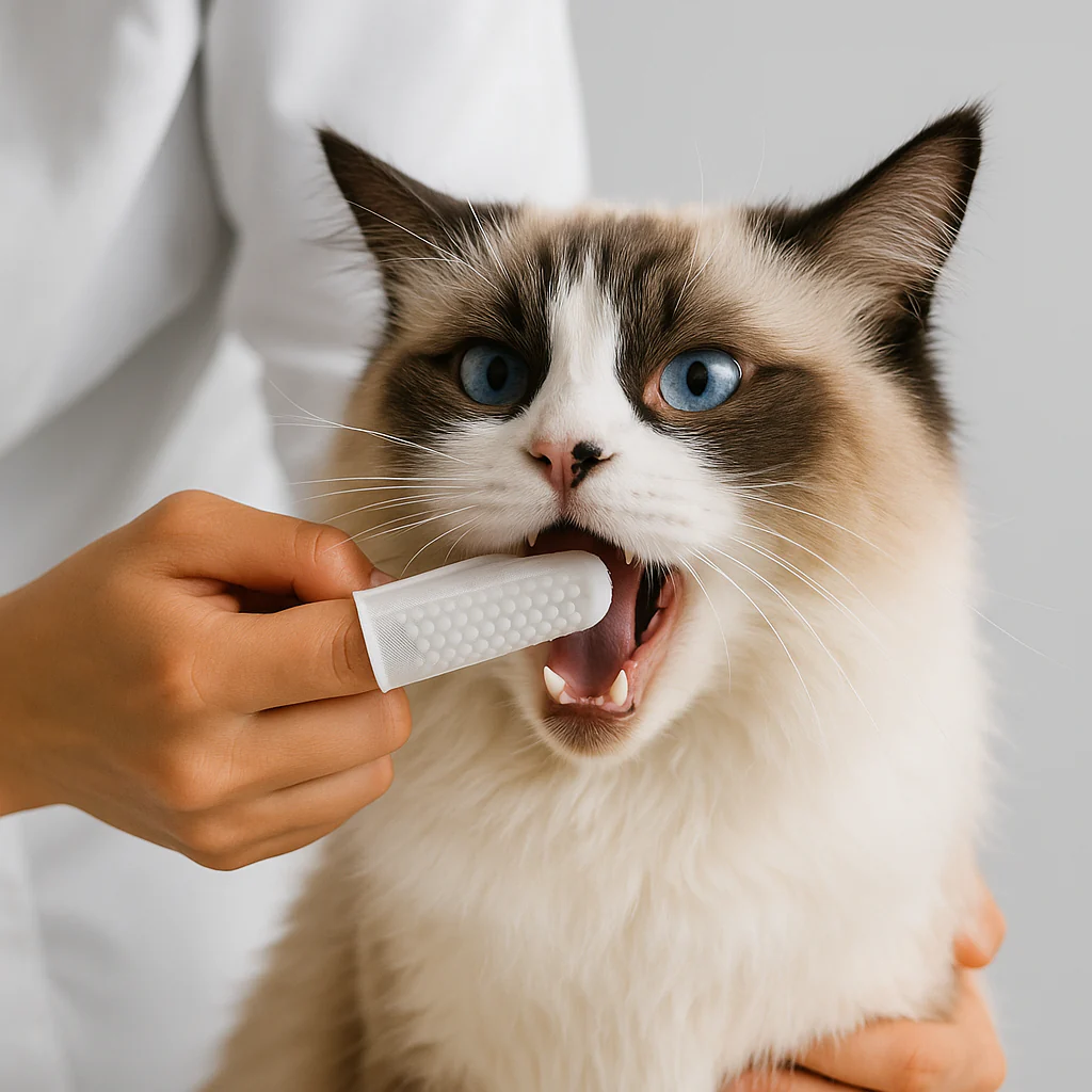 Envuelva una toallita alrededor de su dedo y pásela suavemente por los dientes y las encías de su mascota: arriba, abajo, delante y detrás.